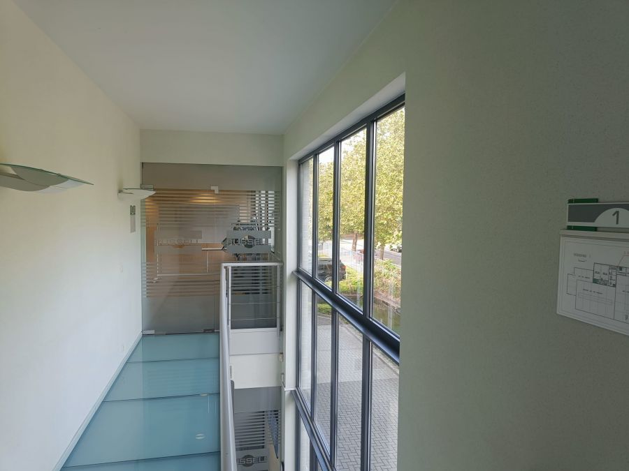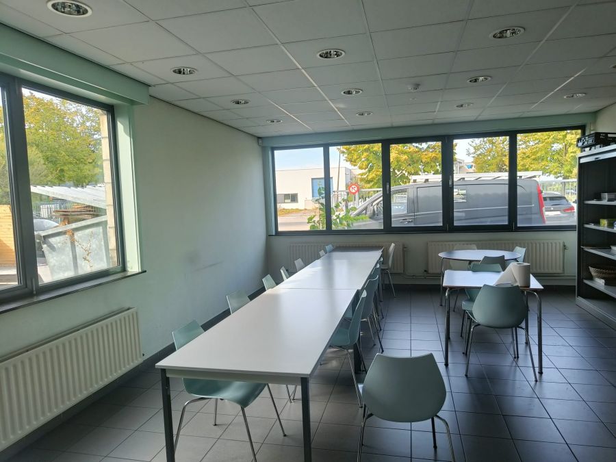 Het gebouw biedt moderne kantoorruimtes met een professionele uitstraling. De indeling maakt een duidelijke scheiding tussen de administratieve en logistieke functies mogelijk, wat bijdraagt aan een efficiënte werkomgeving.