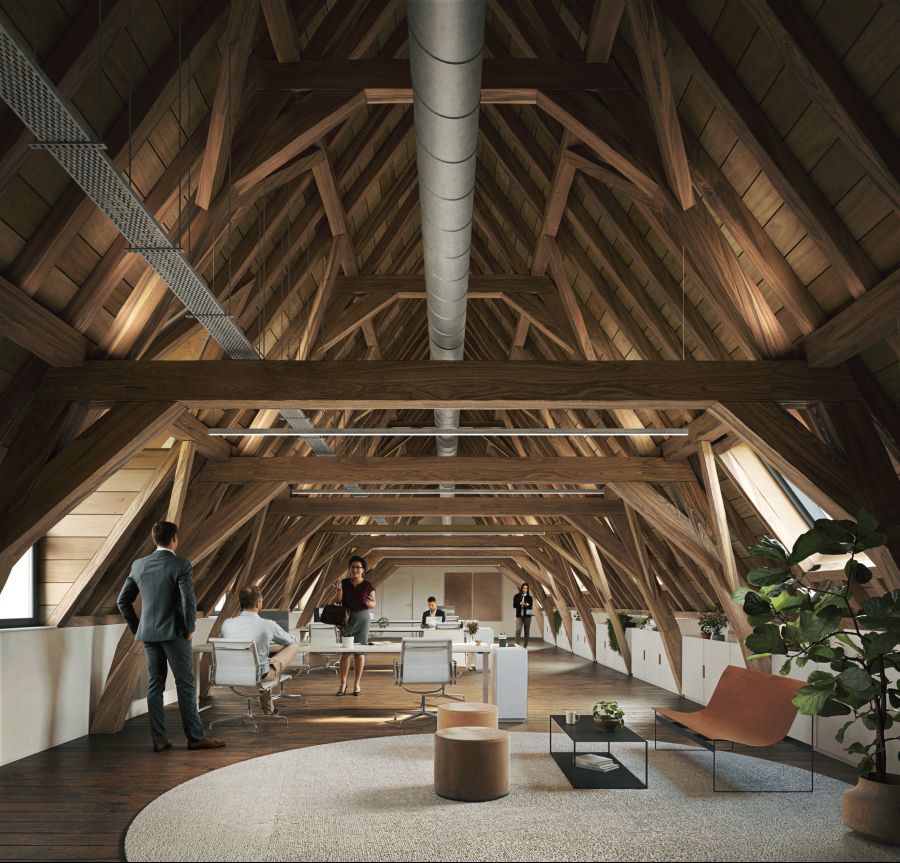 De renovatie zorgt ervoor dat dit historische pand voldoet aan de eisen van een modern kantoor met focus op comfort en werksfeer.