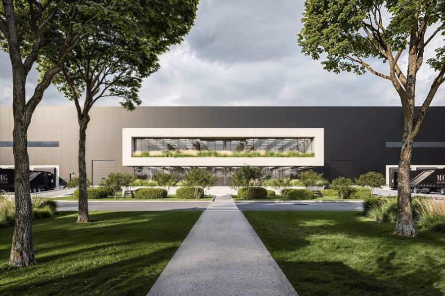 Het project is een modern logistiek complex met een sterke focus op duurzaamheid en energievoorziening. Het dak is volledig bedekt met zonnepanelen om het gebouw van elektriciteit en verwarming te voorzien.