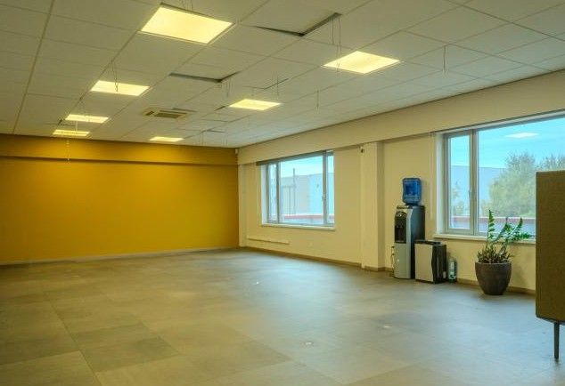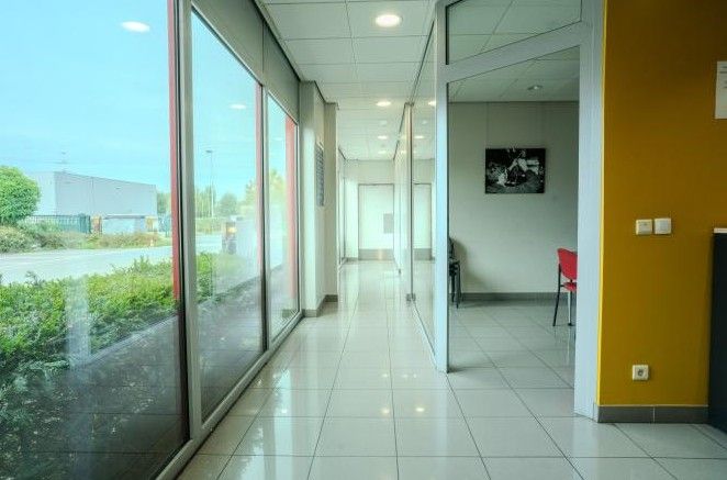 De kantoorruimtes van 460 m² zijn verdeeld over twee niveaus en genieten van veel natuurlijk licht door de grote raampartijen met dubbele beglazing. De ruimtes zijn functioneel afgewerkt met verlaagde plafonds en tegelvloeren.