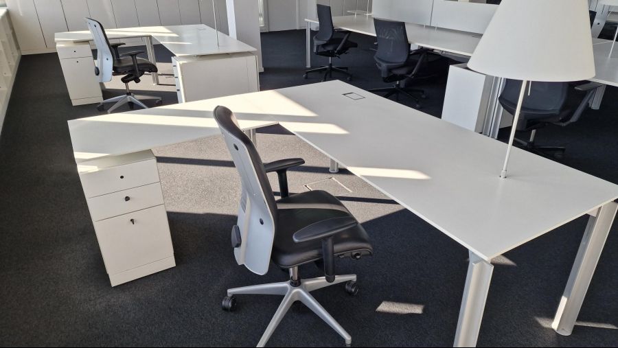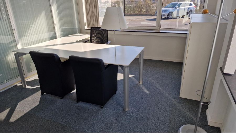 Instapklaar en gemeubeld met modern kantoormeubilair;